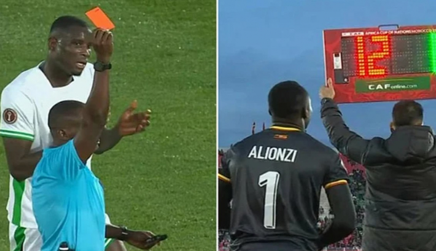Međutim, samo 11 minuta kasnije, Magoola dobija direktan crveni karton jer je igrao rukom izvan kaznenog prostora. Treći golman, Nafian Alionzi, ušao je na teren. Nigerija je to iskoristila i s dva brza gola između 62. i 67. minute riješila sudbinu utakmice.