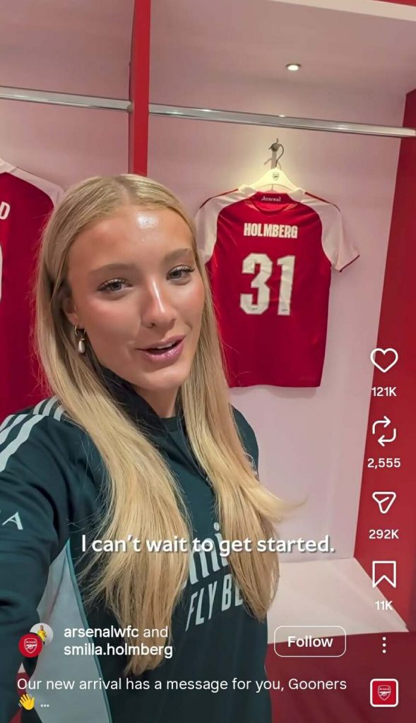 Arsenal je isključio opciju komentarisanja na svojim nalozima na društvenim mrežama zbog neprimerenih komentara upućenih na račun 19-godišnje Šveđanke Smile Holmberg.