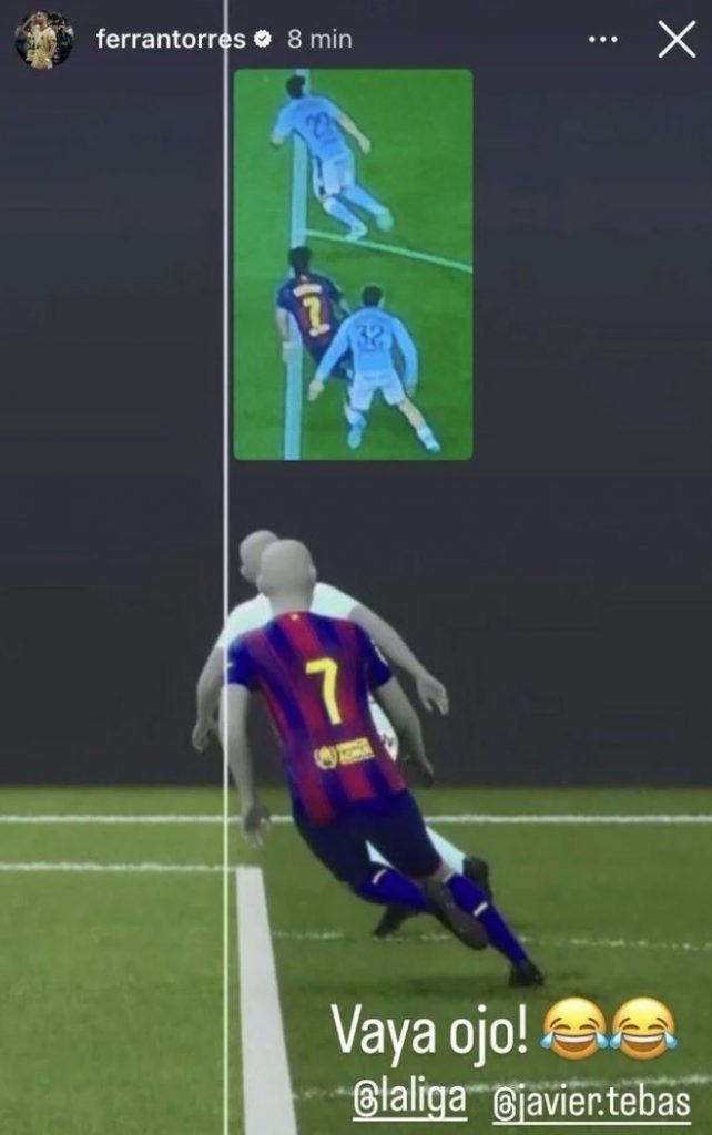 Ferran je također reagovao na društvenim mrežama, podijelivši fotografije navodnog ofsajda i kritikovao rukovodstvo Primere kao i Javiera Tebasa, prvog čovjeka La Lige, koji je nedavno izjavio da trka za naslov prvaka još nije završena usprkos Barceloninoj prednosti od devet bodova.