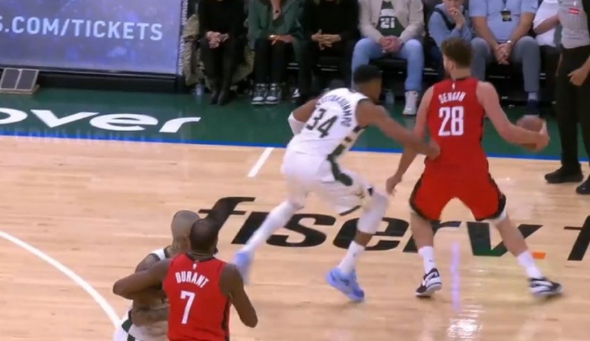 Houston je vodio 117:115, 33 sekunde prije kraja utakmice, a lopta je došla u ruke Alperena Šenguna pod njihovim košem. Giannis Antetokounmpo je bio vrlo agresivan u odbrani.