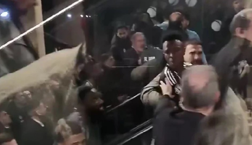 Prozirno staklo razdvaja unutrašnjost stadiona Cityja, omogućujući nekome od navijača da snimi kako se Vinicius sukobljava s igračima i osobljem Cityja.